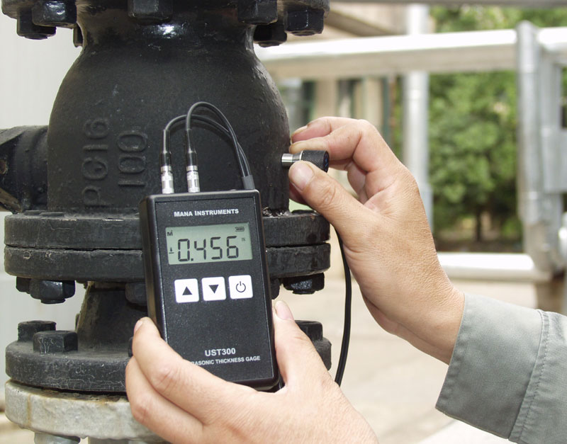 The instrument designed for general thickness measurements on a variety of equipment having access to one side only. It is especially applicable to the measurement of remaining wall thickness on tubes, pipes, pressure vessels, and other parts subject to wall thickness loss due to corrosion or erosion.